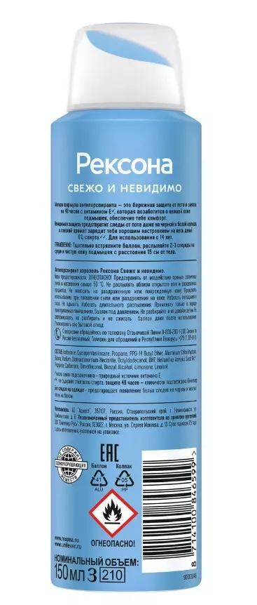 Давно искала эффективный дезодорант, но при этом с мягкой формулой, который подходит молодой и нежной коже подмышек? Rexona нашла решение! Стильный антиперспирант спрей "Свежо и невидимо" с мягкой формулой - это защита от пота и запаха на 48 часов с витамином Е, которая способствует увлажнению и восстановлению кожи подмышек и обесп