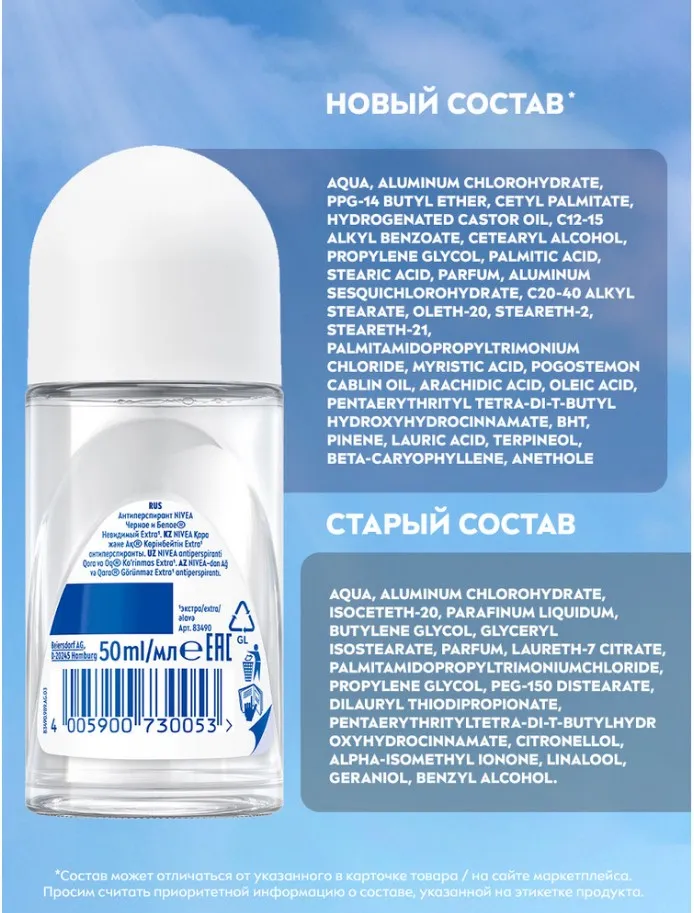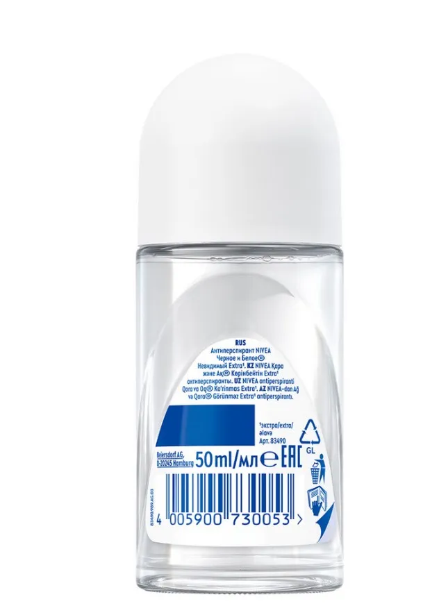 Шариковый дезодорант-антиперспирант NIVEA Черное и Белое Невидимый Extra' с белоцветочным ароматом не оставляет белых следов на черной одежде и предотвращает появление желтых пятен на белой одежде. Черная одежда остается черной, а белая одежда дольше остается белой. Уникальная в ассортименте бренда формула имеет 5 факторов защиты: от запаха, пота, пятен, следов и раздражения. Защищает от неприятного запаха в течение 72 часов*. Действует даже в стрессовых ситуациях или на занятиях спортом. Экономичный расход: шариковый антиперспирант даёт в 2 раза больше применений, чем спрей!** Без этилового спирта. Дерматологически протестировано.