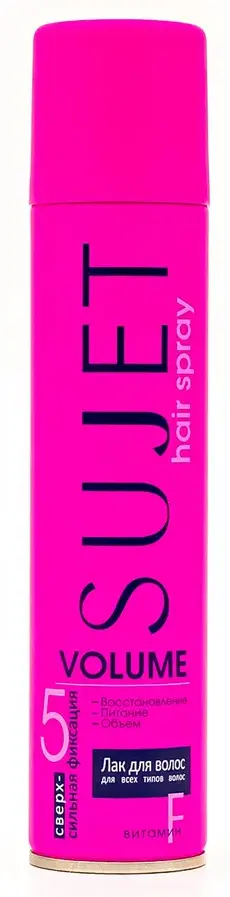 Входящий в состав лака Sujet Volume F-витамин, способствует восстановлению липидного барьера кожи, препятствует истончению волос и появлению перхоти. Эффектная укладка - это Sujet Volume, сверх высокая фиксация до 24 часов плюс придание супер объема!