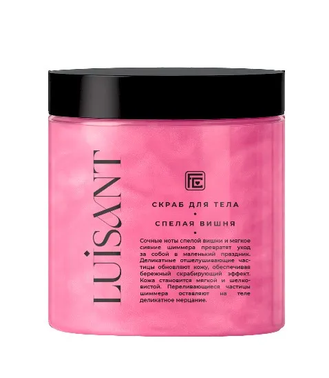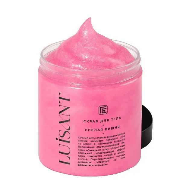 Сочные ноты спелой вишни и мягкое сияние шиммера превратят уход за собой в маленький праздник. Деликатные отшелушивающие частицы обновляют кожу, обеспечивая бережный скрабирующий эффект. Кожа становится мягкой и шелковистой. Переливающиеся частицы шиммера оставляют на теле деликатное мерцание.