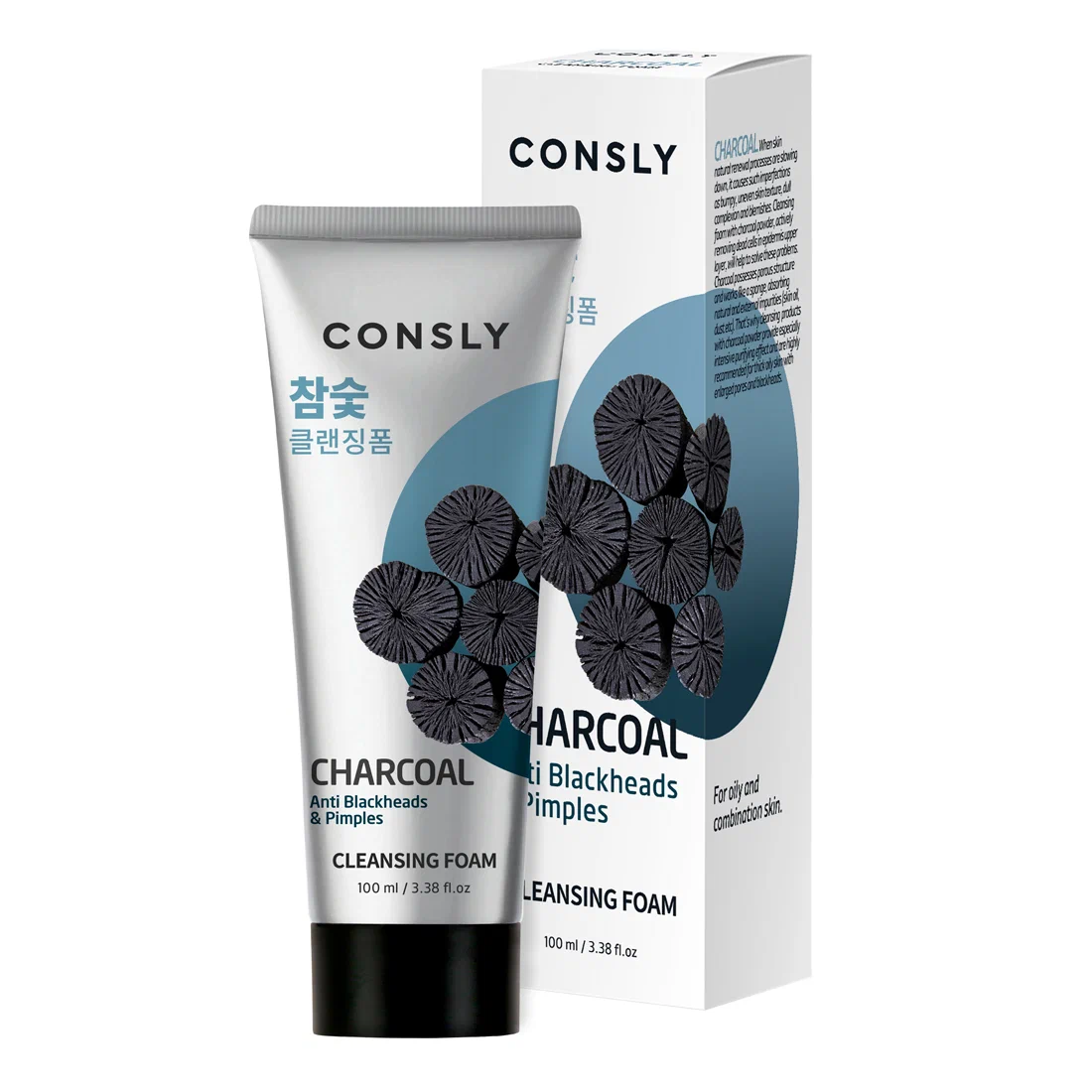 —CONSLY пенка кремовая д/умывания c древесным углем против черных точек 100мл