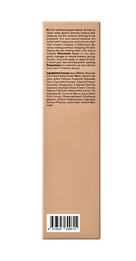 Вода, Гидролат Розы Французской, Глицерин, Бетаин, Ксилит, Пуллулан, Дикаприлилкарбонат, Коко-каприлат капрат, Каприлил/Каприл Глюкозид, Полиглицерил-4 Капрат, Экстракт Цветков Розы Дамасской, Экстракт Пиона, Полисорбат 80, Экстракт Огурца, Феноксиэтанол, Этилгексилглицерин, Гиалуронат Натрия, Отдушка, Фитат Натрия, Молочная Кислота, Бензоат Натрия