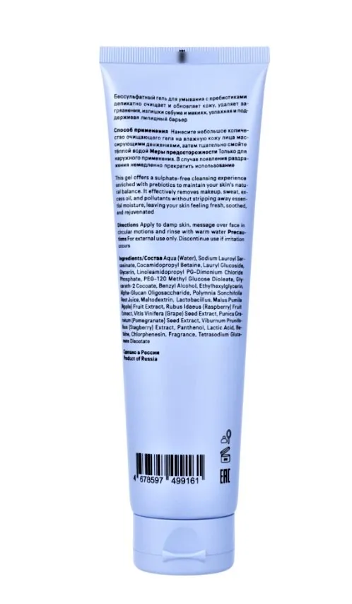 Вода, Лауроил Саркозинат Натрия, Кокамидопропилбетаин, Лаурил Глюкозид, Глицерин, Линоламидопропил ПГ-Димониум Хлорид Фосфат, Пэг-120 Метилглюкозы Диолеат, Кокоат Глицерет-2 , Бензиловый Спирт, Этилгексилглицерин, Альфа-Глюкан Олигосахарид, Сок Корня Якона, Мальтодекстрин, Лактобактерии, Экстракт Яблока, Экстракт Малины, Экстракт Винограда, Экстракт Граната, Экстракт Калины Чернолистной, Пантенол, Молочная Кислота, Бетаин, , Хлорфенезин, Отдушка, Диацетат Глутамата Тетранатрия