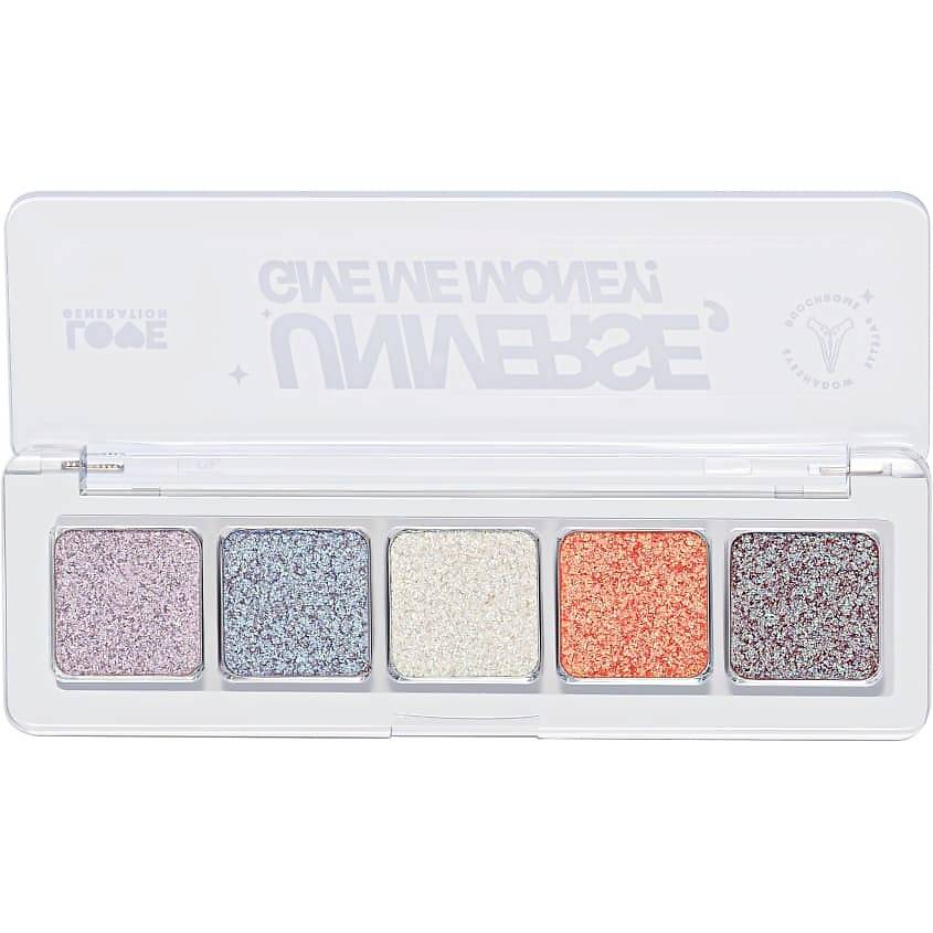 Твое сияние не скрыть — оно разноцветное и так красиво сверкает! Раскрой его с помощью образа с дуохромными тенями: с ними все увидят многогранность твоей личности. В макияже с палеткой UNIVERSE, GIVE ME MONEY! вселенная считает твои сигналы благодаря мерцающим переливам и даст тебе все, что ты попросишь. В палитре — пять светлых сияющих оттенков. Наноси сразу несколько тонов на кожу век и наслаждайся мерцанием.