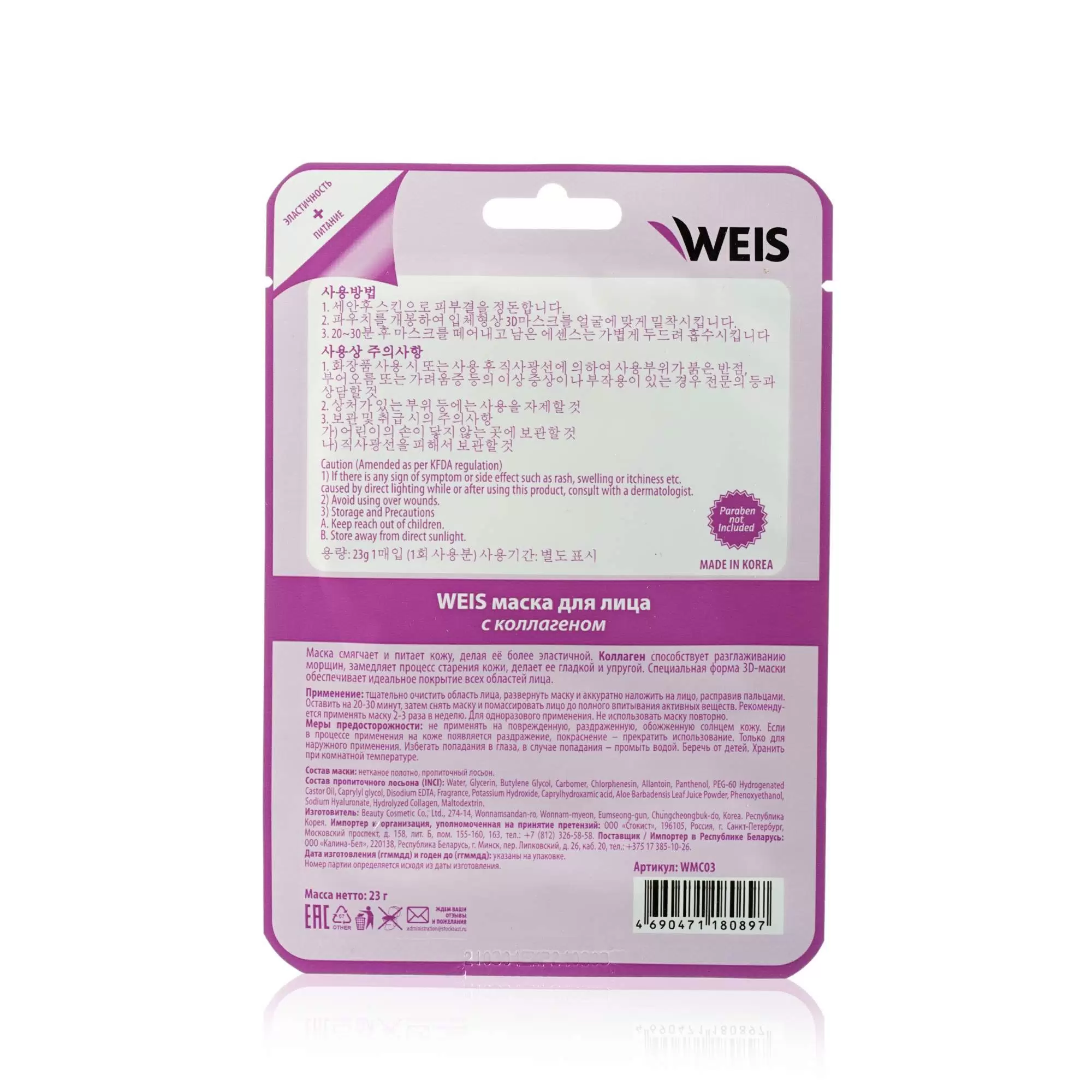 Погрузись в роскошь уходового ритуала с уникальной маской для лица WEIS с коллагеном! Разработанная специально для нежной кожи лица, эта чудо-маска готова подарить ей безграничный комфорт и сияние. Ее легкая и шелковистая текстура деликатно окутывает кожу, словно тончайшая вуаль, мгновенно смягчая ее.Всего за 20 минут действия ты заметишь, как с твоей кожи словно стираются следы усталости. Маска щедро напитывает кожу, делая ее эластичной и упругой. Но это не всё! Маска содержит драгоценный коллаген – белок молодости. Он, как неутомимый труженик, разглаживает морщинки, делает кожу гладкой и упругой, словно у младенца. И, конечно же, нельзя не отметить ее уникальную форму. Тщательно продуманная 3D-структура идеально прилегает ко всем изгибам лица, обеспечивая максимальную эффективность. Всего одна маска – и ваша кожа преобразится. Она станет невероятно нежной, напитанной и подтянутой. Почувствуй, как она сияет изнутри!