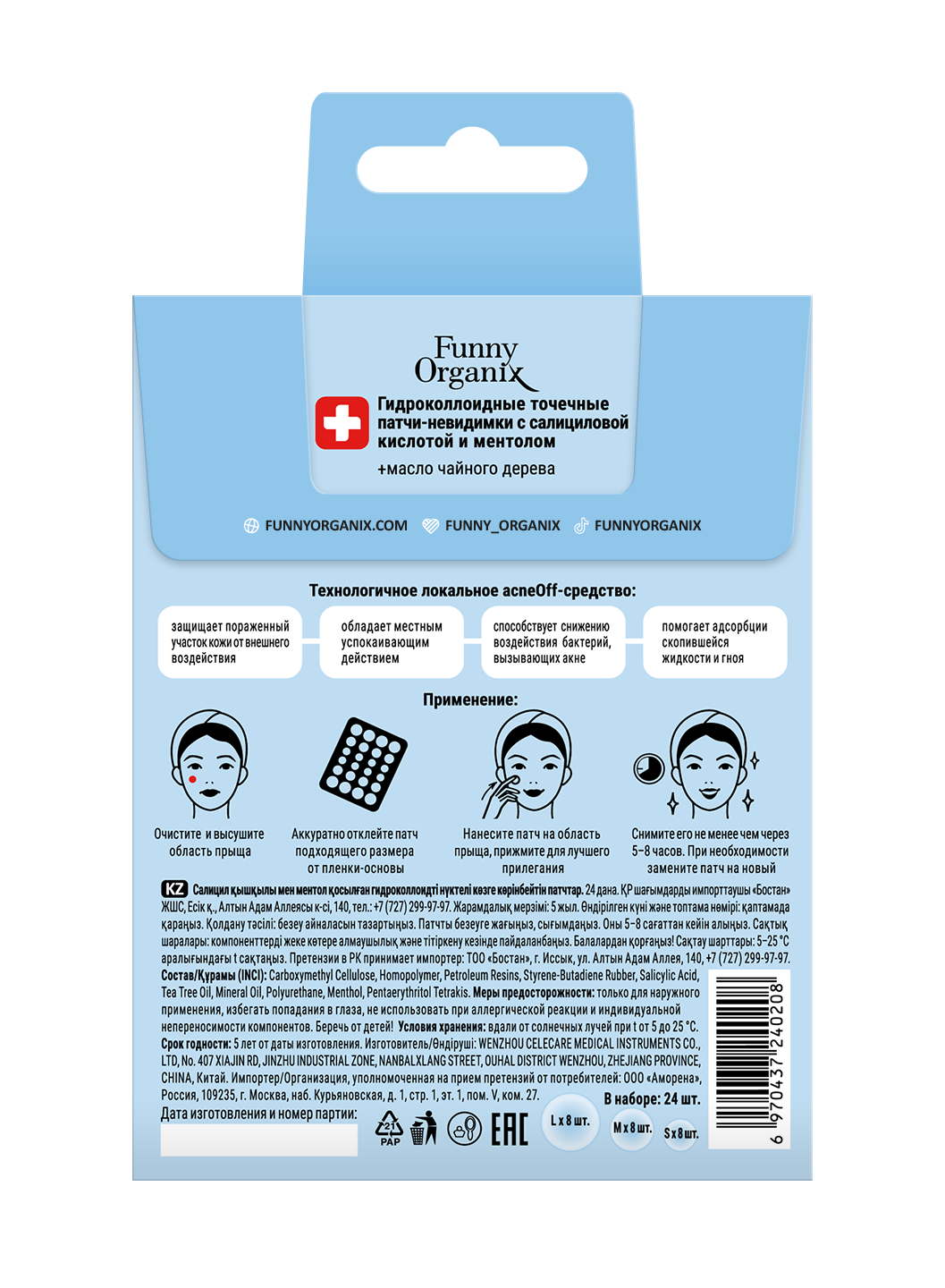 Funny Organix Гидроколлоидные точечные Патчи-невидимки с салициловой кислотой и ментолом.