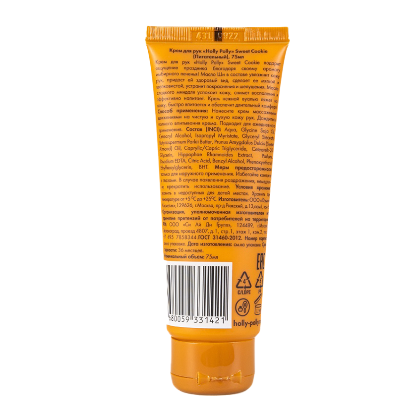 Крем для рук HOLLY POLLY "Sweet Cookie", 75 мл, создан для всех типов кожи, обеспечивая сладкий и уютный уход. Формула обогащена натуральными маслами и экстрактами, такими как масло ши и экстракт ванили, которые глубоко питают и увлажняют кожу, придавая ей мягкость и гладкость.