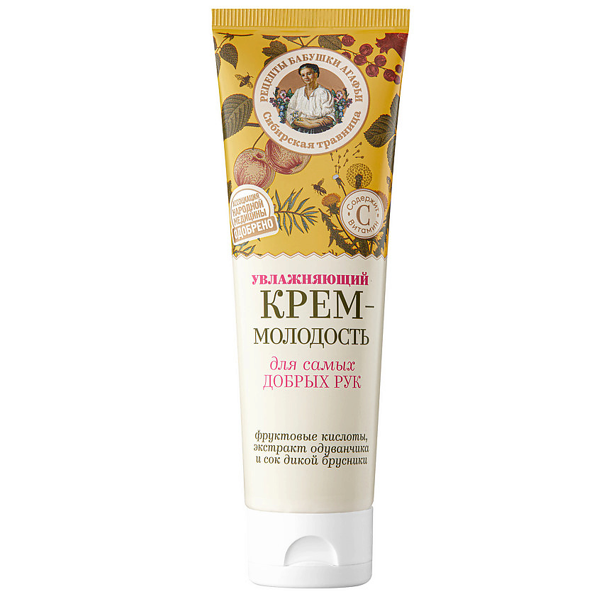 Крем для рук "Рецепты бабушки Агафьи" молодость увлажняющий, 75 мл, создан для сохранения молодости и мягкости кожи. Подходит для всех типов кожи, он обогащен натуральными экстрактами шиповника и облепихи, которые питают и укрепляют кожу, способствуя её восстановлению. Легкая текстура крема быстро впитывается, не оставляя жирных следов, и образует защитный барьер от внешних факторов. Уникальные компоненты увлажняют и смягчают, предотвращая сухость и обеспечивая ежедневный уход, чтобы ваши руки оставались нежными и ухоженными.