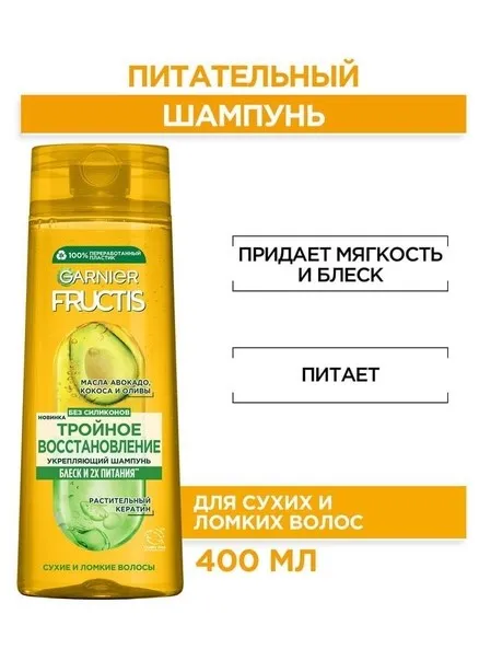 Сила трех масел проникают во все слои волоса, восстанавливают, укрепляют его изнутри и возвращают здоровый блеск и мягкость. 3 масла - 3 действия: против ломкости, сухости, тусклости. Масло Оливы против ломкости. Укрепляет "сердце" волоса. Масло Авокадо против сухости. Питает средние слои волоса. Масло Карите против тусклости. Разг