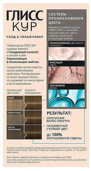 Стойкая краска для волос Gliss Kur Уход & Увлажнение с гиалуроновой кислотой 7-00 Темно-русый. Превосходный уход во время и после окрашивания.
