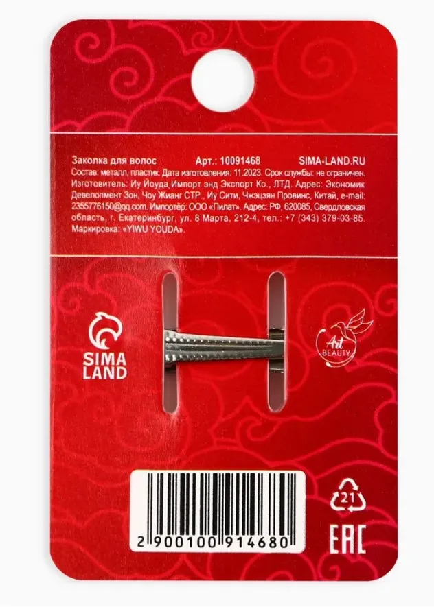 —ART BEAUTY заколка д/волос на открытке облако 3,7*3,2*1см 10091468