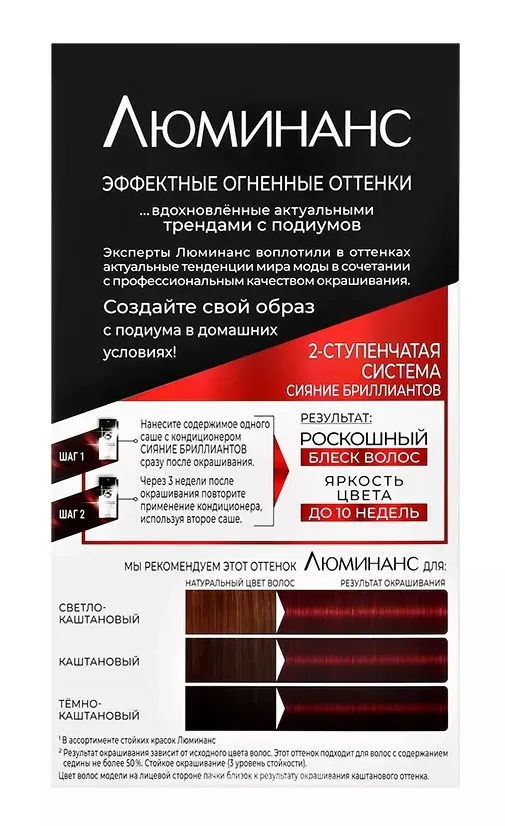 Эксперты Schwarzkopf воплотили последние тенденции мира моды в сочетании с профессиональным качеством окрашивания в оттенках Luminance. Создай свой образ с подиума в домашних условиях! Подчеркни свой стиль и приковывай взгляды благодаря Luminance, который представлен модными стойкими оттенками, сияющими как бриллиант. Формула Luminance с 2-ступенчатой системой сияние бриллиантов позволяет добиться восхитительной яркости цвета до 10 недель*.