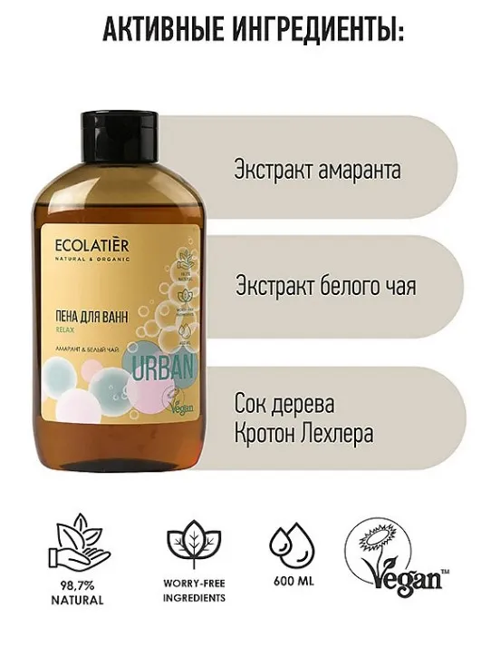 —ECOLATIER Urban пена д/ванн амарант и белый чай 600мл