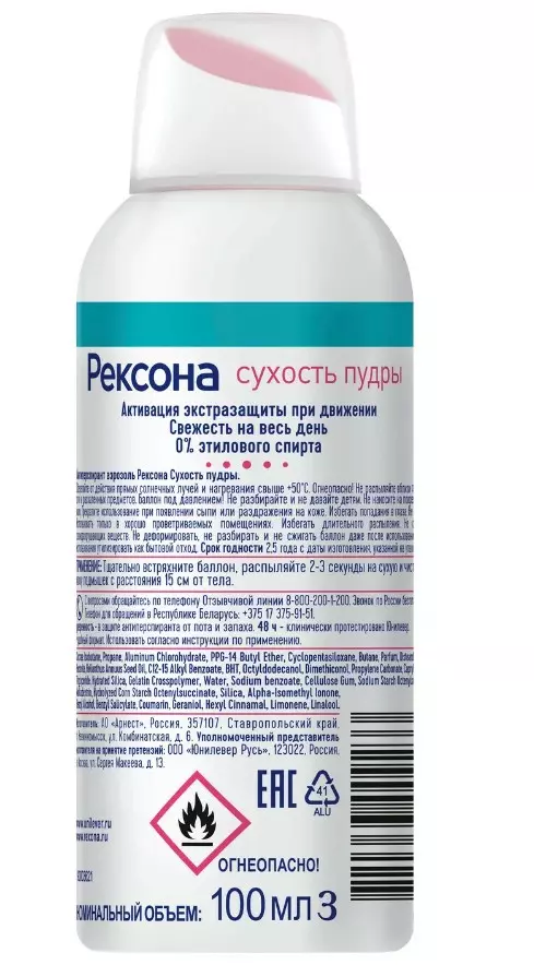 —REXONA антиперспирант жен. сухость пудры 100мл спрей