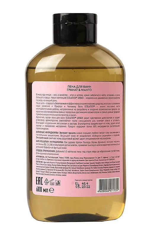 —ECOLATIER Urban пена д/ванн гранат и манго 600мл