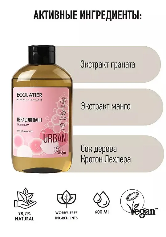 ECOLATIER Urban пена д/ванн гранат и манго 600мл