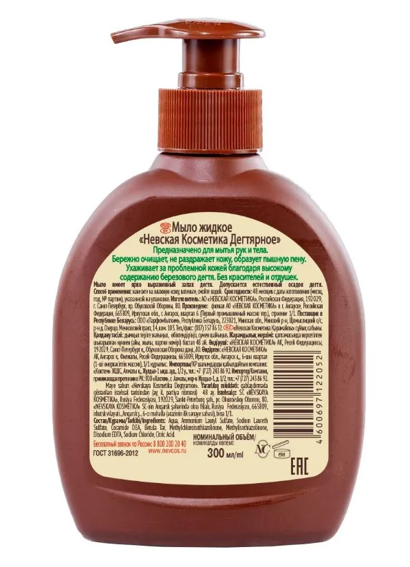—НЕВСКАЯ КОСМЕТИКА мыло жидкое дегтярное 300мл /а12486