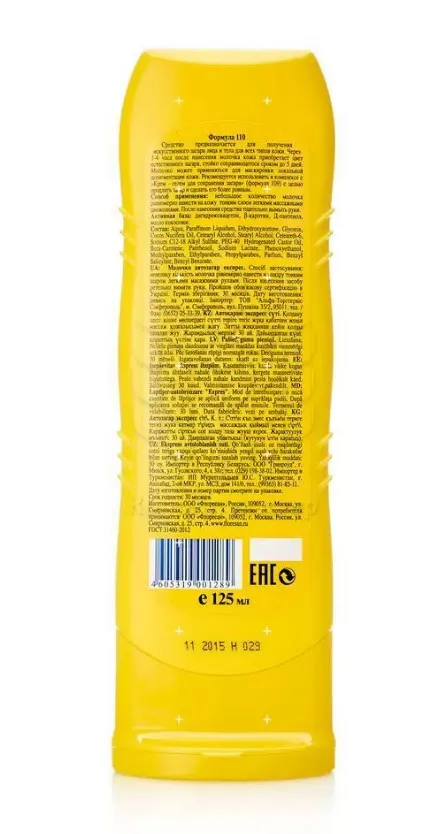 Средство предназначается для получения искусственного загара лица и тела для всех типов кожи. Через 3-4 часа после нанесения молочка кожа приобретает цвет естественного загара, стойко сохраняющегося сроком до 5 дней. Молочко может применяться для маскировки локальной депигментации кожи. Рекомендуется использовать в комплексе с «Кре