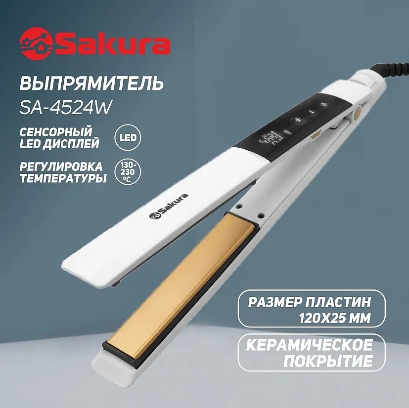 —SAKURA щипцы д/выпрямления волос с керамическим покрытием 50Вт сенсор SA-4524W