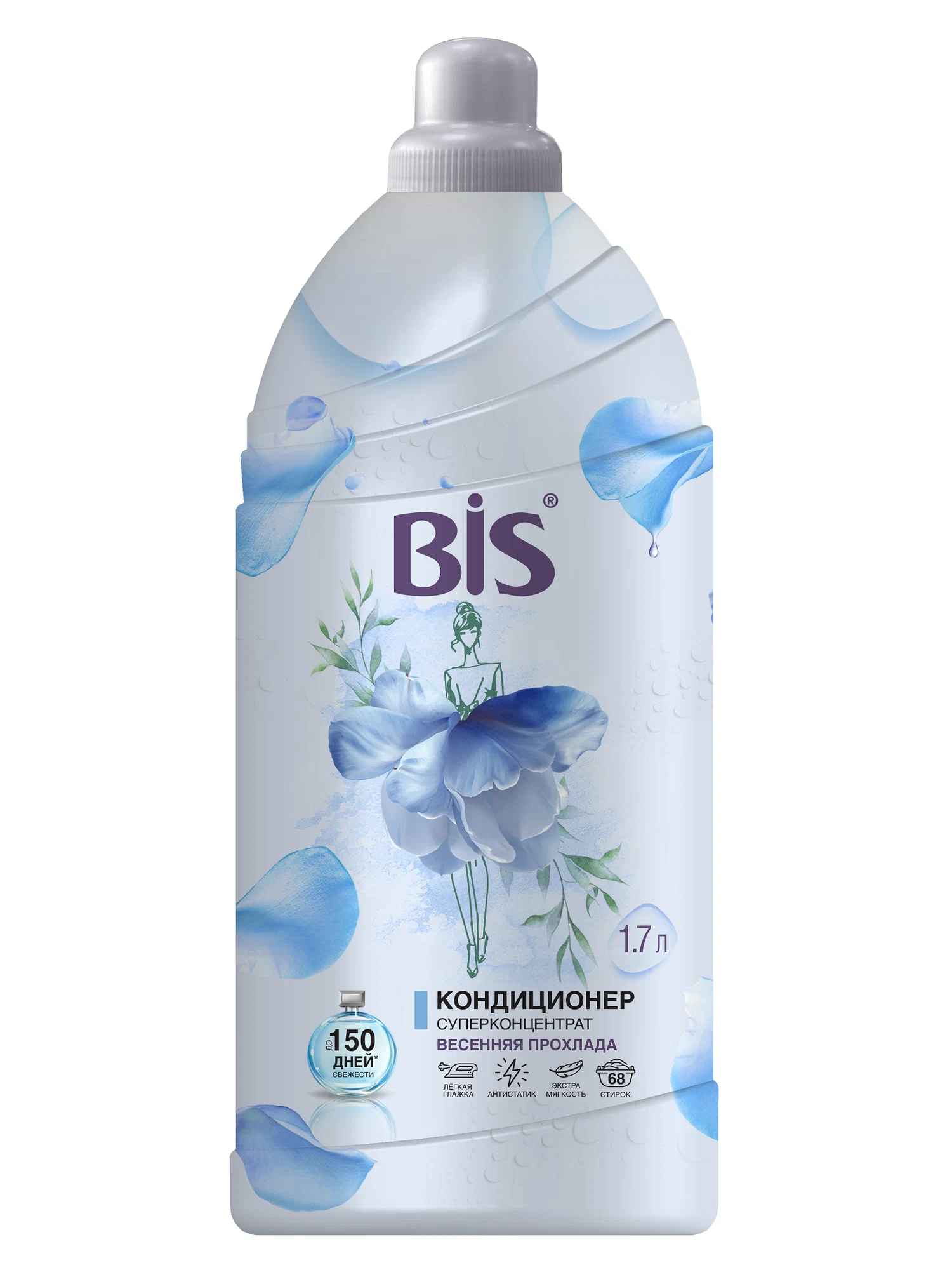 Кондиционер Bis "Весенняя прохлада" предназначен для обработки белья, одежды и других изделий из из всех видов тканей с целью придания им мягкости, приятного аромата, для освежения внешнего вида, придания антистатического эффекта, разглаживания волокон ткани, а также для облегчения глажения обработанного изделия. Обладает свежим, чистым весенним ароматом прохлады, с цветочными тонами и зеленью фруктов в шлейфе. Объем: 1,7 л.