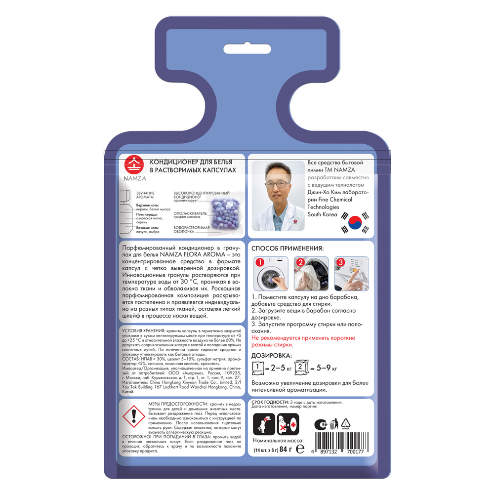 Парфюмированный кондиционер в гранулах для белья NAMZA FLORA AROMA – это концентрированное средство в формате капсул с четко выверенной дозировкой.
