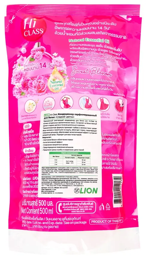 Премиальный смягчающий кондиционер для белья Lion Hi-Class на основе натуральных ароматических масел. Оставляет на белье парфюмированный аромат цветов в течение длительного времени.