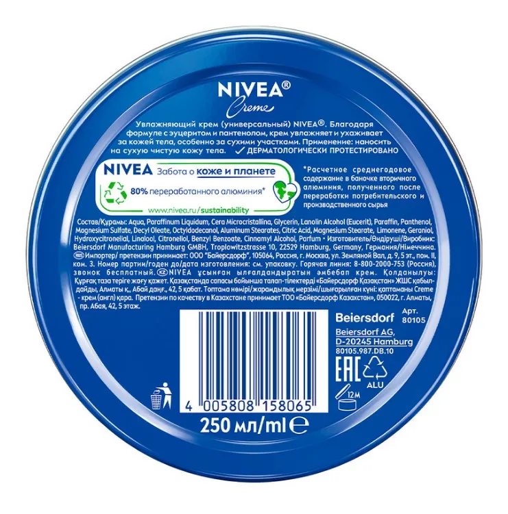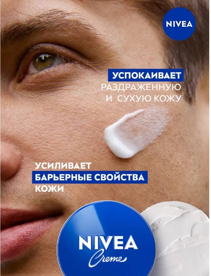 Универсальный увлажняющий крем NIVEA CRÈME теперь в обновленном дизайне с ярким синим цветом баночки. Свойства крема при этом остались неизменными! NIVEA CREME эффективно ухаживает за кожей лица, рук и тела. Благодаря формуле с Пантенолом, крем отлично увлажняет кожу (особенно сухие участки), а за счет плотной густой текстуры крем усиливает барьерные свойства кожи. Подходит для лица, рук и тела. Подходит для всех типов кожи.