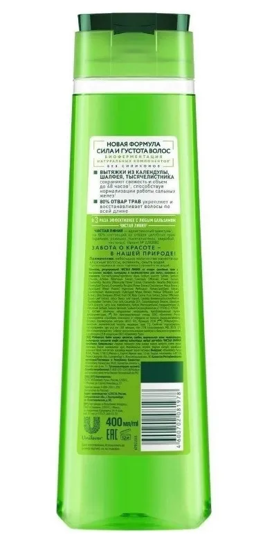 ЧИСТАЯ ЛИНИЯ шампунь д/волос регулирующий шалфей, календула и тысячелистник 400мл