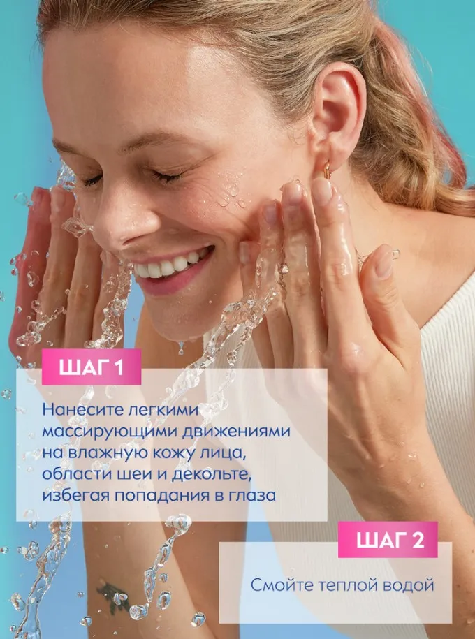 Применение: Нанесите средство для умывания легкими массирующими движениями на влажную кожу лица, шеи и области декольте, избегая попадания в глаза. Смойте теплой водой. Завершая очищение лица, нежно протрите кожу лица ватным диском с тоником для лица от NIVEA и нанесите крем для лица NIVEA CARE на очищенную кожу лица.