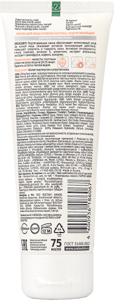 Подарите своей коже упругость и свежесть с подтягивающей маской для лица SVOBODA Natural, 75 мл.