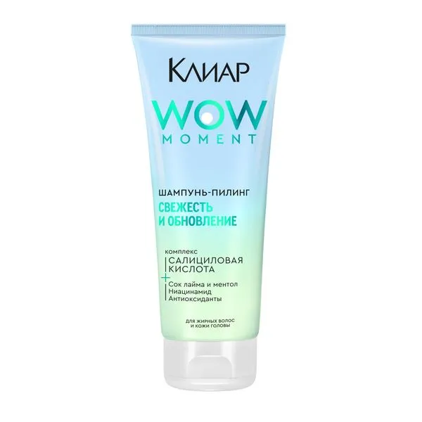 Жирная кожа головы и волосы нуждаются в тщательно подобранных уходовых средствах, которые бы эффективно очищали, снижали жирность и улучшали состояние кожи головы. Для эффективного и глубокого очищения попробуйте шампунь-пилинг от Клиар Свежесть и обновление. Ощутите всю силу x3 очищения: удаление себума, сухого шампуня, стайлинга. 2.4% салициловая и гликолевая кислоты в составе наиболее эффективны для снижения жирности кожи головы и качественного очищения; ниацинамид и антиоксиданты – для успокаивающего эффекта и улучшения состояния кожи головы, сок лайма и ментол совместно с другими активными ингредиентами освежают волосы и кожу головы. Имеет яркий аромат цитрусовых, содержит ледяной ментол и сок лайма, приятен при нанесении.