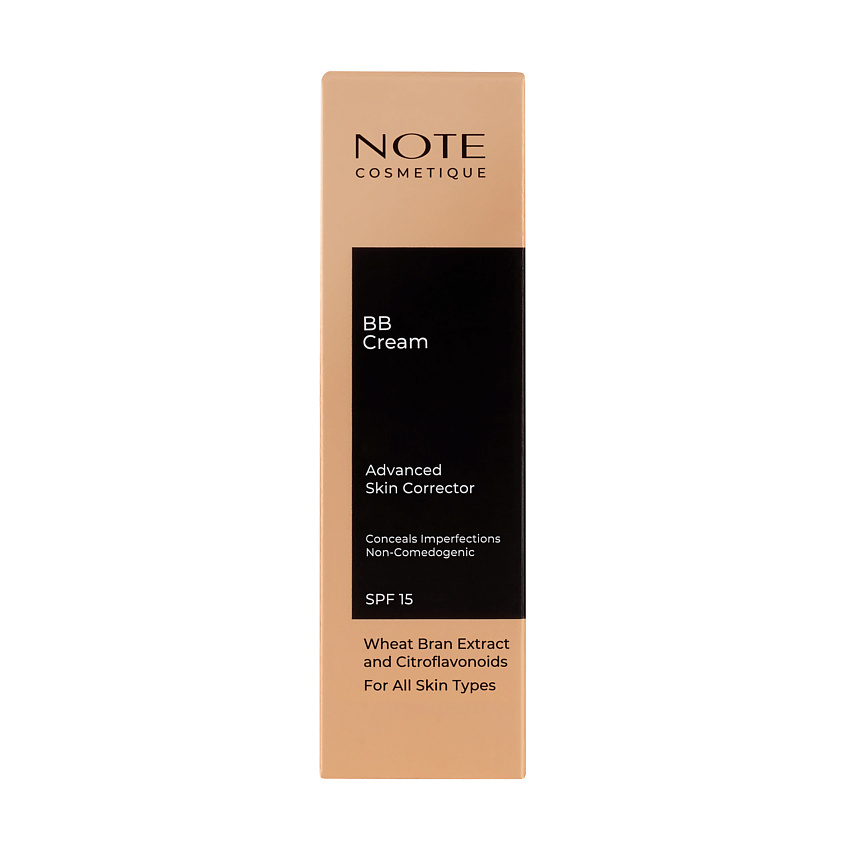 Косметическое чудо - ВВ крем от NOTE COSMETIQUE! Настоящий профессионал своего дела, ВВ умело сочетает в себе свойства тонального крема, корректора и полноценного ухаживающего средства. ВВ крем увлажняет, питает, разглаживает кожу, буквально стирая с лица несовершенства. ВВ крем настоящий - "умный гаджет". Его чудесная формула обогащена ценными натуральными ингредиентами и обеспечивает коже безусловный комфорт. Экстракт пшеничных отрубей в составе крема отвечает за смягчение и увлажнение кожи, защищает от воздействия внешней среды, успокаивает воспаления, способствует регенерации клеток. Дуэт экстракта цветков померанца и плодов грейпфрута - 100% природный эликсир красоты и молодости! Ценнейшие органические кислоты восстанавливают и увлажняют кожу на клеточном уровне, дарят ей эластичность, снимают сухость и раздражение. Лецитин отлично восстанавливает барьерные функции, глубоко питает и увлажняет. Масло подсолнечника богато необходимыми для молодости кожи жирными кислотами: олеиновая и линолевая активно смягчают, пальмитиновая и стеариновая кислоты - питают, витамины А, С и D - борются с оксидативным стрессом. Витамин Е - главный витамин молодости и красоты - стимулирует регенерацию клеток кожи, восставляет эпидермис после загара, обладает мощными антиоксидантными свойствами. Сочетание всех этих ценнейших ингредиентов дает потрясающий результат: придает коже упругость и эластичность, повышает тонус, интенсивно увлажняет, глубоко питает! Как в оркестре под управлением дирижёра голоса инструментов, сливаясь, дарят нам невероятное наслаждение, так и ВВ крем за счет синергии ингредиентов дарит коже блаженство и идеальный тон. SPF 15. Способ применения: для более легкого покрытия наносите крем подушечками пальцев, для более плотного покрытия - спонжем или плотно набитой кистью прижимающими движениями. Можно наносить как консилер на область вокруг глаз. Крем составляет идеальную пару с BB КОНСИЛЕРОМ. Идеально подходит для всех типов кожи.
