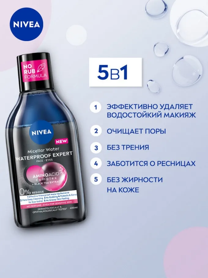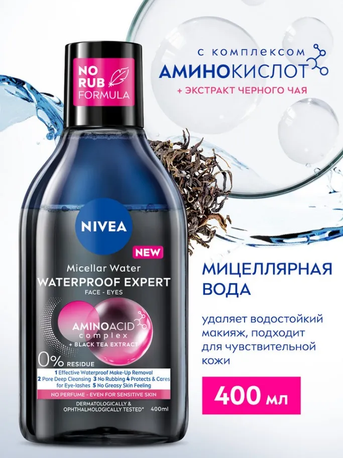 —NIVEA-VISAGE вода мицеллярная д/стойкого макияжа waterproof expert 400мл