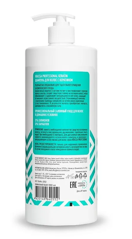 KRASSA Professional шампунь д/волос с кератином 1000мл