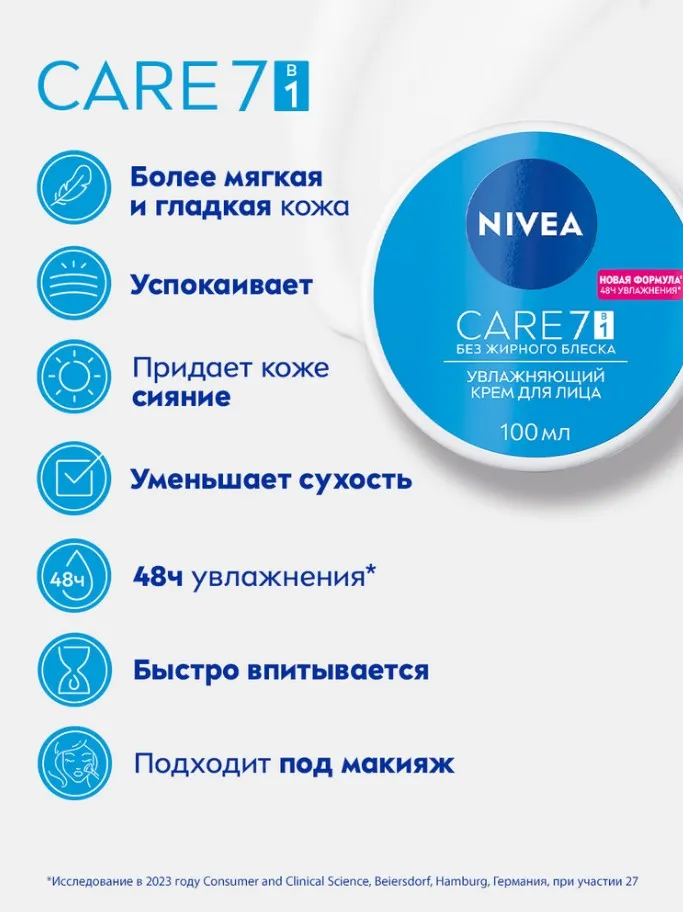 Увлажняющий крем для лица NIVEA Care 7в1 для ежедневного ухода дарит вашей коже свежесть, мягкость и комфорт. Попробуйте уже сегодня и почувствуйте разницу!