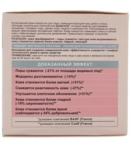 Назначение: Питание, Интенсивный уход, Все типы кожи Линия: Совершенная кожа Инновация для создания совершенной кожи: эффективность сыворотки + комфорт питательного крема в одном средстве. Интенсивный крем-сыворотка для лица, совершенствующий кожу днем и ночью, обогащен уникальным компонентом Epidermist, который заметно разглаживае