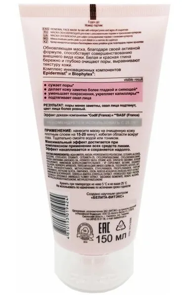Назначение: Очищение, Питание, Все типы кожи Линия: Совершенная кожа Обновляющая маска, благодаря своей активной формуле, способствует совершенствованию внешнего вида кожи. Белая и красная глина бережно и глубоко очищают поры, выравнивают текстуру кожи. Комплекс инновационных компонентов Еpidermist и Biophytex: Сужает поры* Делает