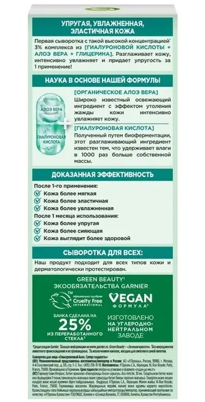 —GARNIER Skin naturals сыворотка д/лица гиалуроновая алое супер гладкость 30мл