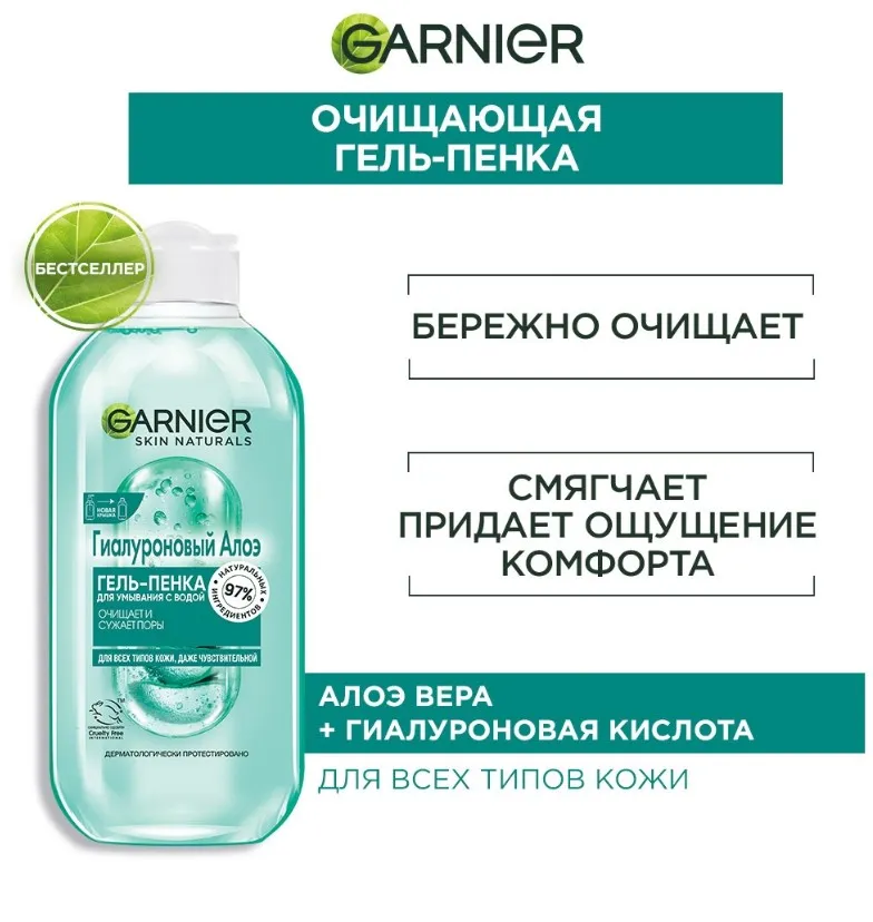 —GARNIER Skin naturals гель-пенка д/умывания гиалуроновый алое д/всех типов кожи 200мл