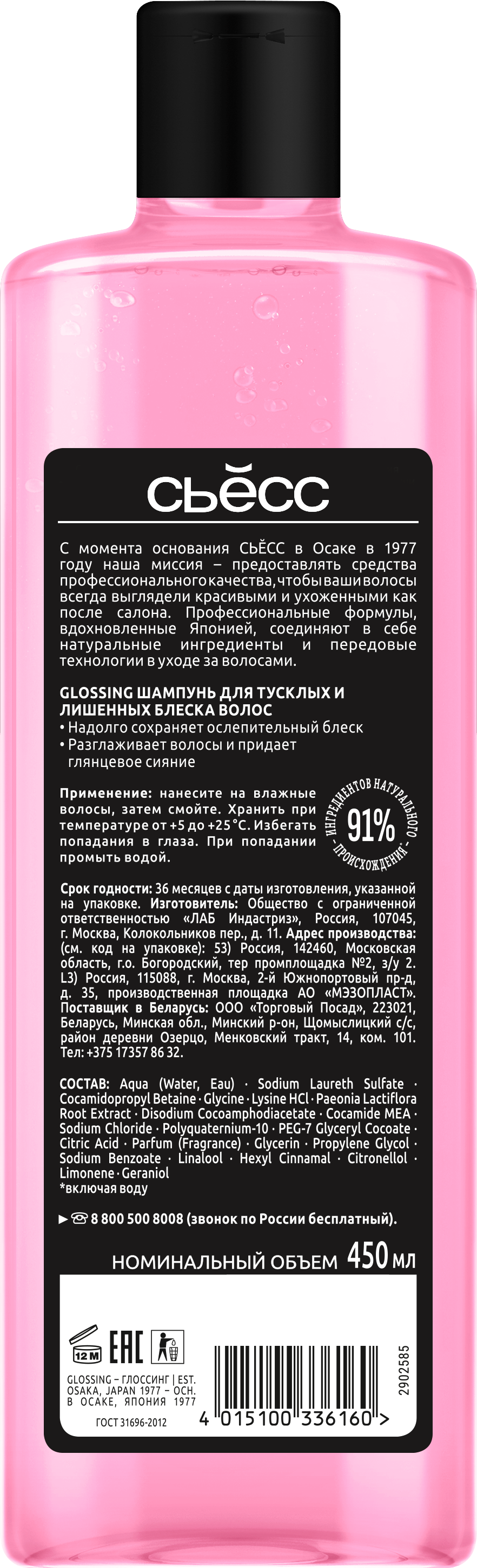 Уход с эффектом ламинирования до 10 дней* для зеркального блеска и сияния волос. Эффективная формула Syoss Glossing Shine-Seal c технологией ламинирования укрепляет структуру волоса и придает тусклым волосам длительный блеск и ослепительное сияние. Мягко очищает волосы и придает длительный блеск. Сияние и зеркальный блеск* При комплексном использовании шамуня, бальзама и маски из серии Syoss Glossing Shine-Seal. Способ применения: Нанесите на влажные волосы, тщательно помассируйте и смойте.