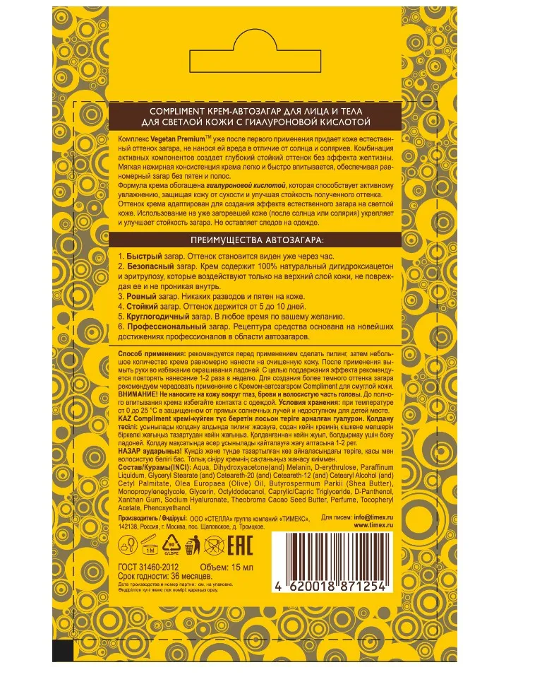 COMPLIMENT саше автозагар д/лица и тела д/светлой кожи 15мл