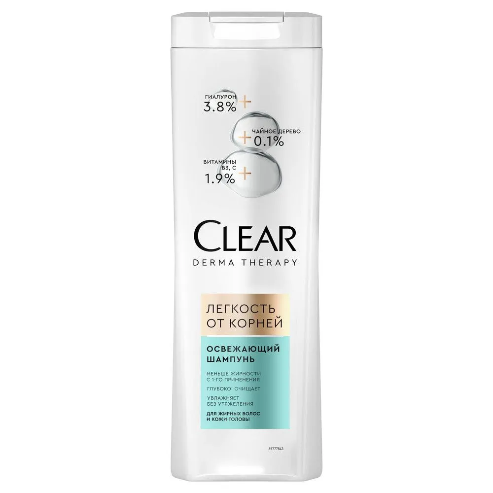 Излишняя жирность волос и кожи головы становится проблемой и вмешивается в ваши планы? Волосы не имеют объема и уже на второй день выглядят неухоженными? Добавьте в свой уход новую серию продуктов Clear Derma Therapy Легкость от корней. Первый шаг – освежающий шампунь. Вы заметите меньше жирности уже с 1-го применения!