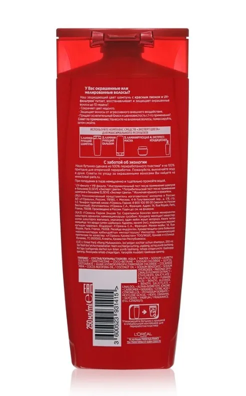 Эффективный шампунь-уход «Эльсев. Эксперт Цвета» подойдет для окрашенных или мелированных волос. В его составе – ламинирующий эликсир с маслом льна, обеспечивающий значительный результат сразу в трех направлениях: 1) Надолго сохраняет яркость и насыщенность цвета, препятствуя вымыванию красящих пигментов. 2) Дарит волосам роскошное