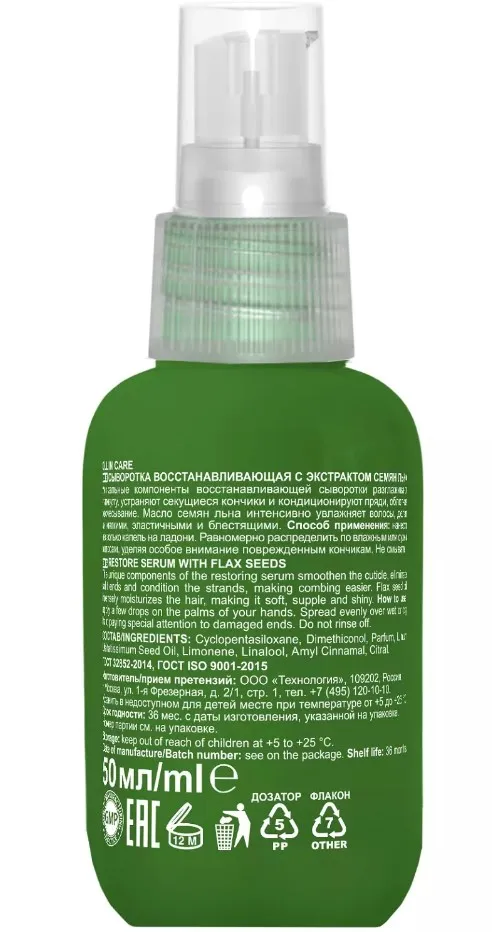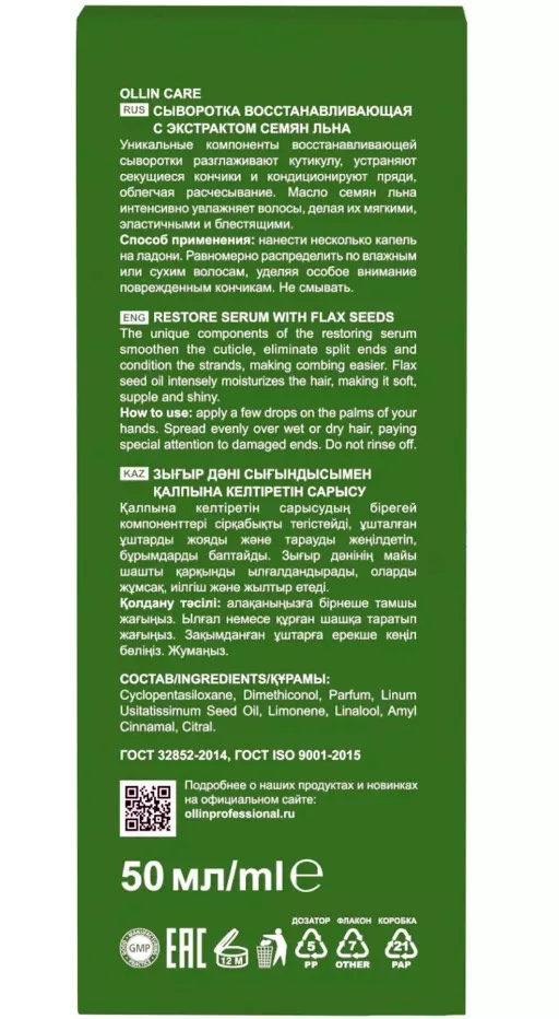Мини-версия сыворотки ollin восстанавливающая с экстрактом семян льна с питательными семенами льна уже доступна для заказа.