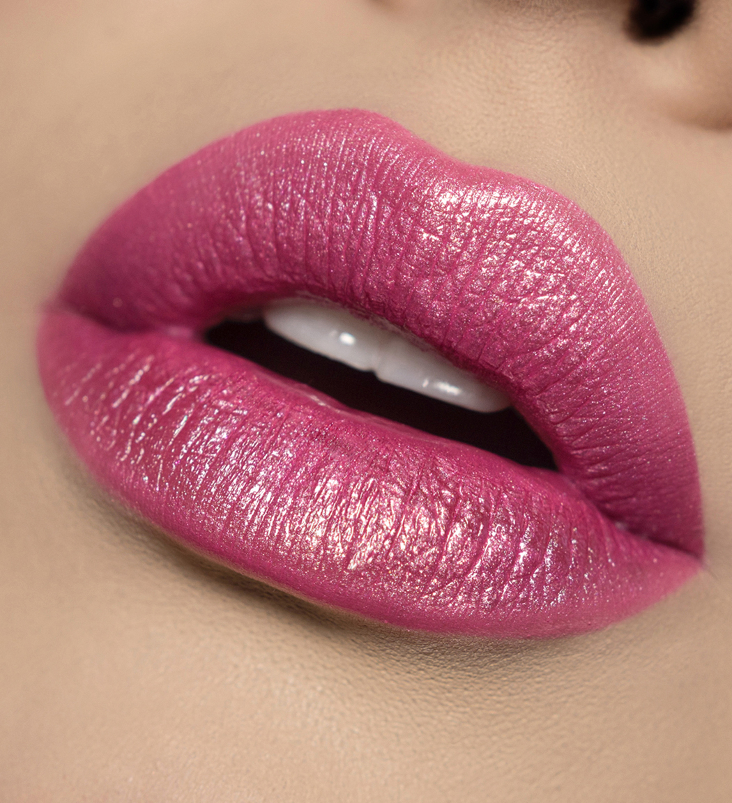 Жемчужные перламутры, разнообразные мерцающие шиммеры и глиттеры в составе помады создают изумительный эффект объемных губ и придают им ослепительное сияние.