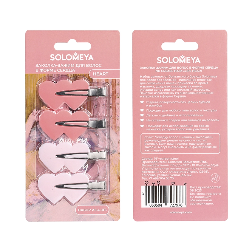 —SOLOMEYA заколка-зажим д/волос в форме сердца 4шт 230418-002