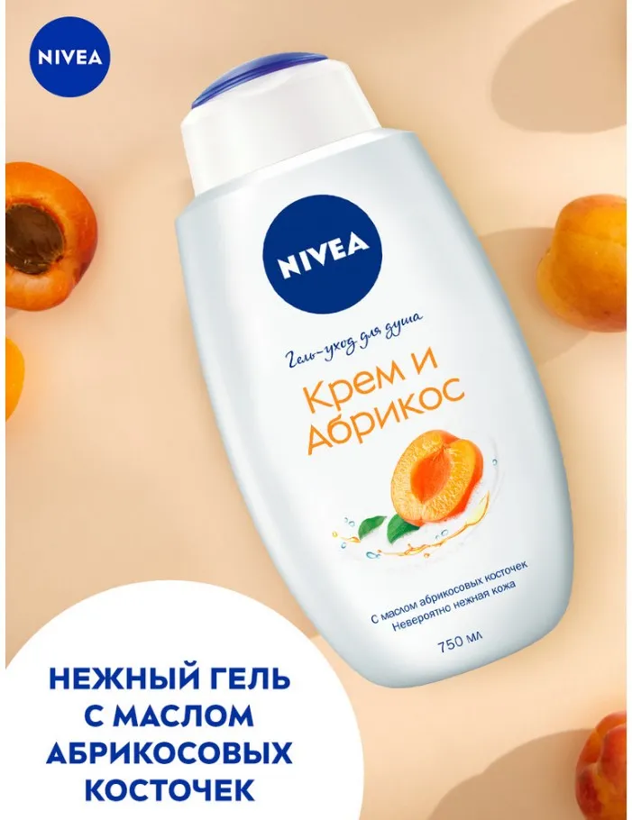 Попробуйте гель-уход для душа «Крем и Абрикос» для всех типов кожи от NIVEA. Гель для душа «Крем и Абрикос» с натуральным маслом абрикосовых косточек очищает кожу и заботится о ней, делая ее невероятно мягкой, а нежный аромат абрикоса пробудит Ваши чувства. Превратите ежедневное принятие душа в момент истинного наслаждения и заботы о себе и своем теле. Можно использовать с мочалкой для скрабирования кожи. pH-сбалансировано*. Не содержит микропластик**. Дерматологически протестировано.