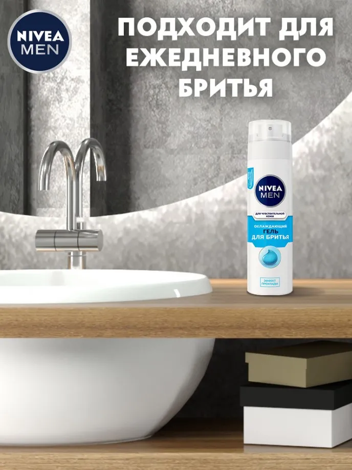 Чувствуешь раздражение? Остынь, все в твоих руках! Попробуй охлаждающий* гель для бритья для чувствительной кожи без спирта** от NIVEA MEN. Формула без спирта** и ментола, обогащенная экстрактами ромашки и морских водорослей, помогает защитить кожу от раздражения во время бритья и дарит приятное ощущение прохлады*. Специально для мужчин с чувствительной кожей. Дерматологически протестировано. Рекомендуется дополнить уход, используя бальзам после бритья из охлаждающей линейки для чувствительной кожи от NIVEA MEN.