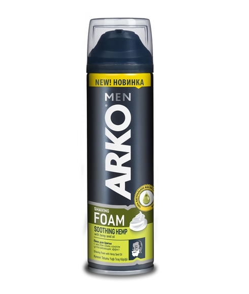 Первая в истории ARKO® Men пена для бритья с маслом семян конопли* с успокаивающим эффектом обеспечивает мягкое комфортное бритье благодаря специально разработанной формуле.