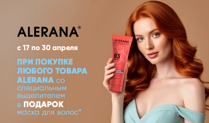 С 17 по 30 апреля за покупку ЛЮБОГО товара бренда ALERANA получите в подарок маску для волос 400 мл ALERANA Кератиновое восстановление.